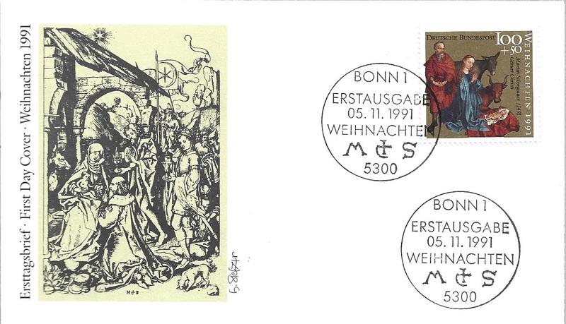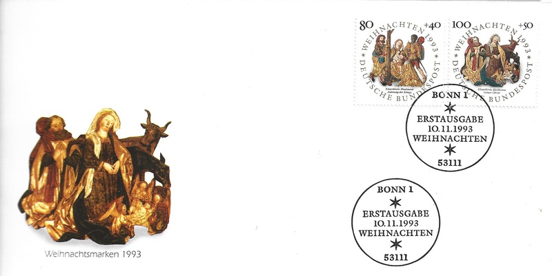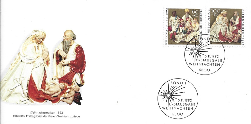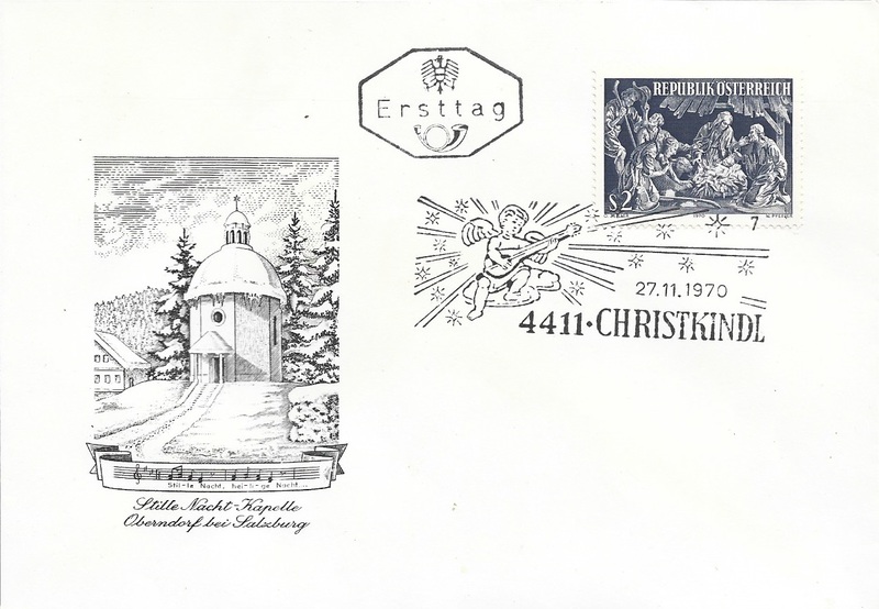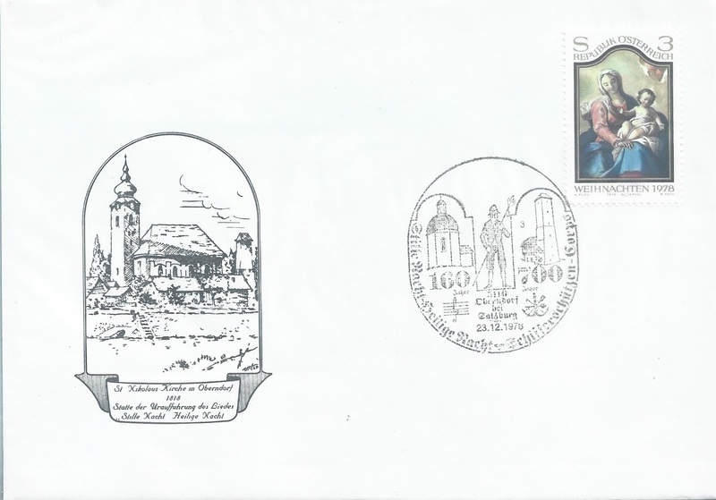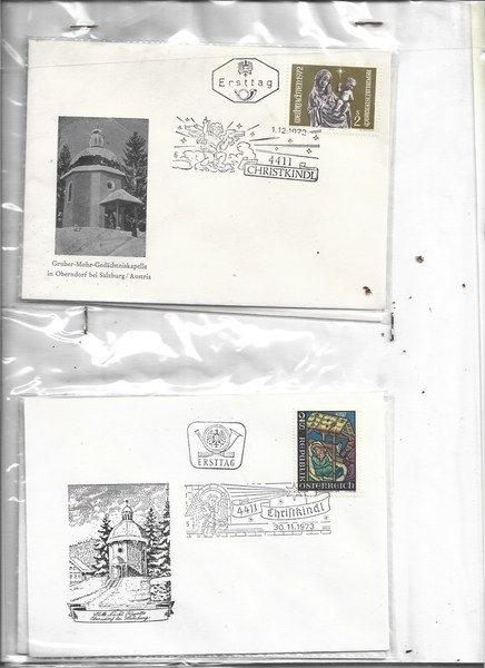 Deutsche Weihnachtsmarken mit + ohne Rand auf FDC, Sonderumschläge + normale Umschläge mit Sonderstempel, sowie 16 Sonderumschläge von der Stille Nacht-Heilige Nacht Kapelle in Oberndorf bei Salzburg in