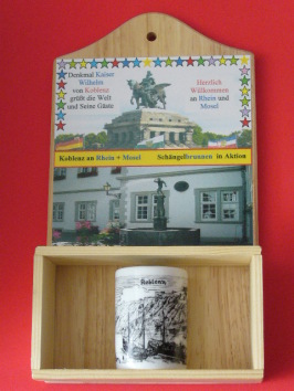 Holzbrettchen Nr.01=oval, senkrecht mit 3 Koblenzer Bilder. Preis 6,00 € (20160406)
